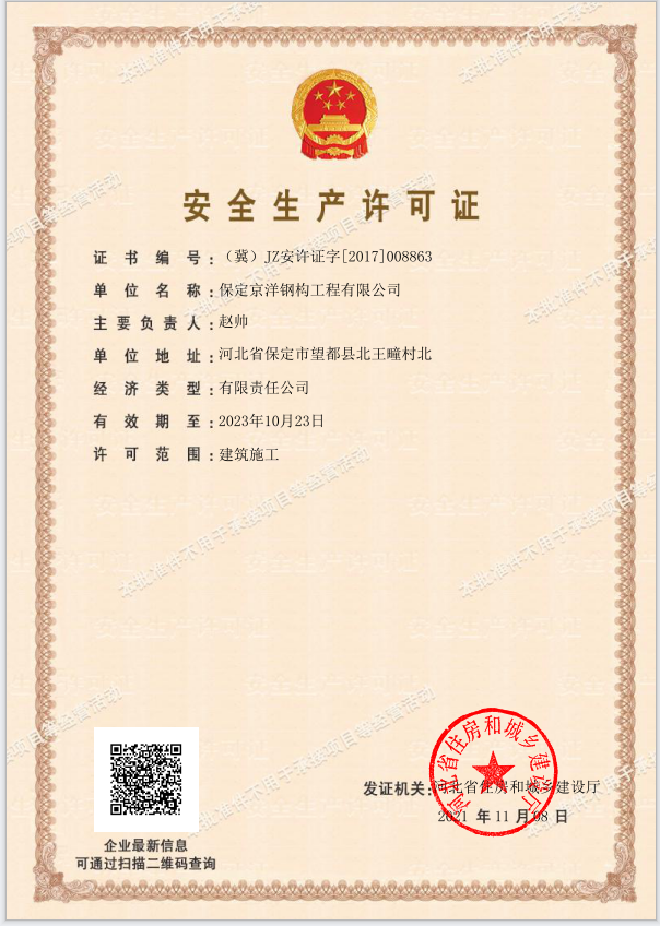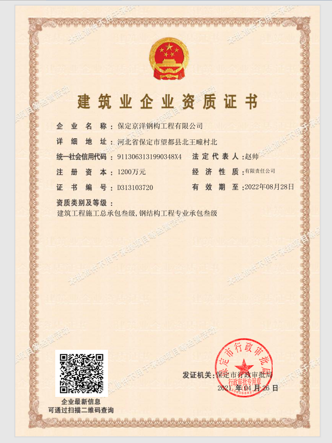 公司主要致力于鋼結(jié)構(gòu)設(shè)計、制作、安裝、銷售為一體的鋼結(jié)構(gòu)施工專業(yè)企業(yè)。成立于2010年,注冊資金1200萬元。公司擁有國內(nèi)先進的數(shù)控自動焊接設(shè)備、H鋼結(jié)構(gòu)生產(chǎn)線、CZ鋼快速切換一體機、自動剪切壓板機等,優(yōu)良的制作加工車間及檢測設(shè)備。公司秉承“質(zhì)量求生存,管理出效益”發(fā)展理念,組建了一支高素質(zhì)、高水平的團隊以及責任明確、職責清楚、獎罰分明的管理體系。